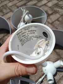 Vendo set di 3 lampadari da soffitto in ottime condizioni, 2 da 50cm curva e 1 da 30 cm circa. Struttura interna in metallo bianco con attacco per 3 lampadine E27, quello piccolo ne ha uno solo, paralume grigio chiaro in tessuto.
