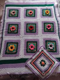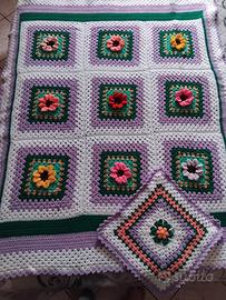 Plaid con copri cuscino a fuori fatto a mano ad uncinetto,nuovo misure plaid : 145x120 misure cuscino : 38x38