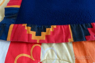 Plaid blu con motivo colorato sul bordo. Dimensioni: 190*140 cm