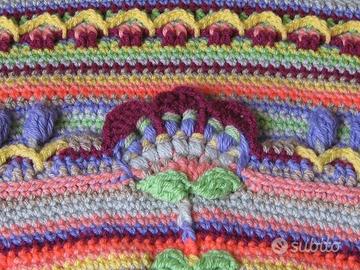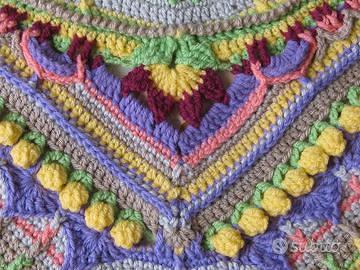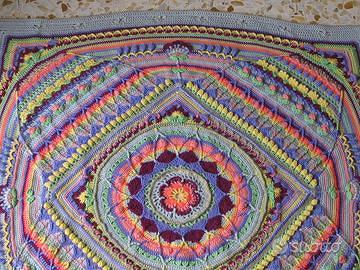 Un plaid-coperta-tappeto particolarissimo fatto completamente a mano da me con uncinetto e 30% di lana merinos+acrilico di qualità, misura 130x130 cm, andrà bene per tutto: poltrona, divano, tappeto yoga, coperta e ecc.