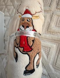 Bellissimo e morbidissimo plaid ricamato misura matrimoniale , compreso di borsa in panno. Nuovo con cartellino