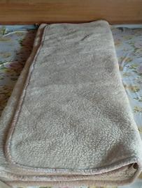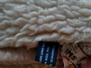 Coperta, plaid o materassino coprimaterasso (formato sul letto matrimoniale "Scaldotto" o "Coprimaterasso Terapeutico"). Materiale: 100% Pura Lana Vergine Merino (Vello di lana). La lana Merino è molto pregiata, nota per la sua morbidezza, leggerezza e le eccezionali proprietà termoregolatrici (mantiene caldo d'inverno e fresco d'estate). Aspetto: Tessuto con una lavorazione a ricciolo o bouclé (effetto "montone" o "shearling"), di colore panna/avorio. Funzione: Utilizzato per il letto per fornire calore naturale, traspirabilità e un effetto isolante, spesso associato a benefici per il riposo. "i nastri elastici o fettucce cucite sugli angoli o sui lati della coperta. sono per fissare saldamente il vello agli angoli o ai lati del materasso, impedendo che si sposti durante il sonno. Prezzo trattabile.