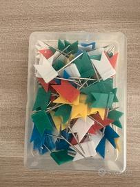 Planisfero a colori 120x80cm, pronto per essere appeso, con 100 bandierine di 5 colori per segnare i luoghi già visti o da visitare!
