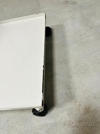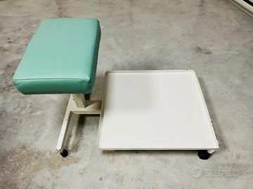 Poggiapiedi con cuscino in pelle e base per vasca idro, con piedini e ruote per gli spostamenti. Pesante e stabile, di buona qualita’. Manca un po’ di vernice in qualche punto ma basta un ritocco.
