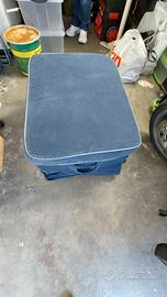 Poggiapiedi Ikea, imbottito, copertura in tessuto blu, vano contenitore (manca il fondo ma basta inchiodare un pezzo di compensato), buone condizioni. Ritiro in loco.