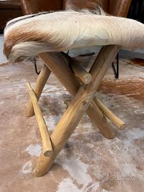 Vendo bellissimo poggiapiedi in legno e vera pelle. Come nuovo. Maison du Monde. Euro 80,00 + spese di spedizione o ritiro a Firenze.