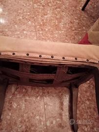 Vendo poggiapiedi Vintage in legno e tessuto le misure sono : Altezza complessiva da terra 33Cm lunghezza parte superiore dove poggiare i piedi(tessuto )È di 49 Cm x una profondità complessiva di 36Cm