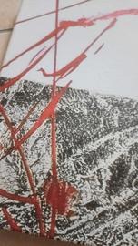 Polittico astratto moderno del pittore Agus, composto da più pannelli. Colori bianco, rosso e grigio scuro. Stile elegante e contemporaneo. Dimensioni totali circa 168 x 113 cm. In ottime condizioni.