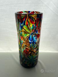 Vecchio e raro vaso stallato Pollio Perelda per Aureliano Toso, Murano. Altezza 30 cm, diametro 12 cm a stelle raffigurante i famosi fuochi del Redentore di Venezia. Vaso del dopoguerra ca. 1950. Inoreziosito da unserti brillanti color oro. Realizzato con l’avventurina. L'avventurina è una varietà unica di quarzo nota per la sua caratteristica brillantezza e in questo caso dona lucentezza al vaso. Questa splendida luminosità rende l'avventurina perfetta dalle incisioni ornamentali ai gioielli sfaccettati. Il vaso di rara fattezza, e’ in perfette condizioni. Vaso da collezionisti o da investimento.