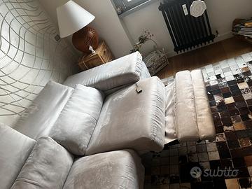 Bellissimo divano angolare con penisola e relax di Poltrone e Sofa’ color beige jn tessuto microfibra sfoderabile e lavabile.