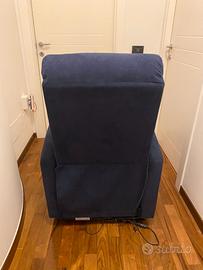 Portona alzapersona con elevazione della seduta per aiuto all'alzata, 2 motori indipendenti per reclinazione schienale e alzata del poggiapiedi. Posizione TV con schiena dritta e piedi alzati. Posizione Letto 160°. Con imballo originale, usata soltanto quattro volte, praticamente nuova.