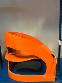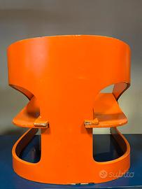 Prima versione in legno della poltrona 4801 di joe colombo per kartell in colore arancione