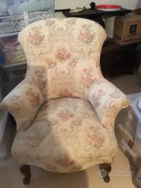 Poltrona 800 imbottita a nuovo, ma stoffa macchiata. Regalo sostituzione stoffa nuova. Possibilita’ di avere anche il divano