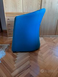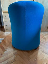 Poltrona a base tonda rivestita in tessuto azzurro H 78 cm L 62 cm P 65 cm Seduta: H 45 cm P 44 cm Ritiro a carico dell'acquirente