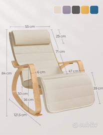 Poltrona a dondolo con braccioli in legno. Poggiapiedi regolabile in 5 posizioni. Nuovo mai usato con imballo originale