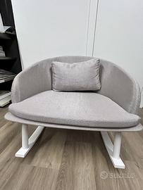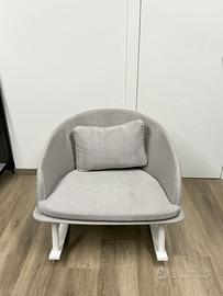 Frutto di un lavoro complesso e minuzioso interamente fatto a mano, la poltrona a dondolo si distingue per il sofisticato design italiano e la nobiltà della tradizione artigiana.