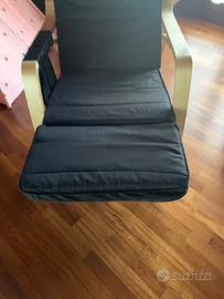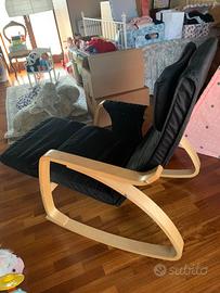 Bellissima poltrona a dondolo di colore nero con sacca porta telecomando e riviste, ribaltina per stendere le gambe. Praticamente nuova.