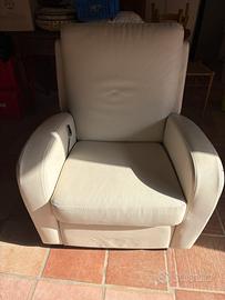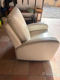 Vendo poltrona a dondolo con poggia piedi con sistema meccanico in pelle bianca. Ottimo stato. I minimi difetti sono visibili in foto. Prezzo d’acquisto 650€. Solo ritiro.