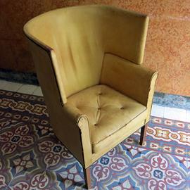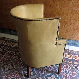 Originale poltrona a pozzetto anni 60 in pelle. Il rivestimento presenta alcune imperfezioni nella parte inferiore dei braccioli, la struttura interna in legno è in ottimo stato. Ritiro in zona.