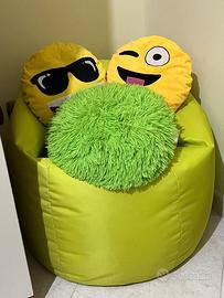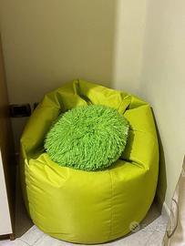 Vendo poltrona a sacco adatta per camera e salotto. Poliestere con Imbottitura in Palline di Polistirolo. Colore Verde Cuscini a parte Ritiro a mano