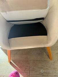 Vendo elegante *poltrona in alcantara beige*, con gambe in legno chiaro e linee moderne.