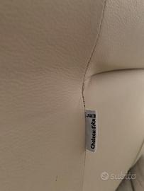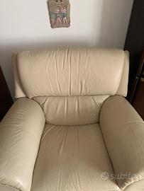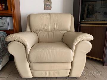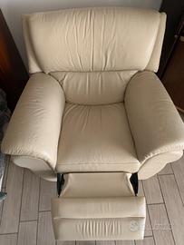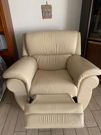 Poltrona allungabile beige in VERA pelle tenuta in ottimo stato come si può vedere bene dalle foto,dove ci si può stare in relax sia da seduti oppure tirando la levetta che si trova sulla destra anche da sdraiati.