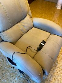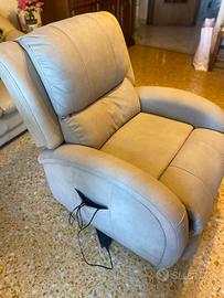 Vendo poltrona alzapersona , con schienale imbottito e rinforzato, è dotata di pediera estraibile, meccanismo recliner e sistema alzapersona. Imbottitura e poggiareni rinforzato, morbidi braccioli, schienale ergonomico. Grazie al meccanismo recliner si trasforma in una poltrona relax, che con il sistema alzapersona agevola i movimenti per rimettersi in piedi.