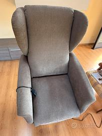 poltrona alzapersone elettrica antiribaltamento pari al nuovo , usata solo 15 giorni da me stesso che sono un calciatore, a seguito di infortunio al ginocchio. ha ancora le sue plastiche protettive originali , manifattura italiana , doppio motore di fabbricazione italiana , tessuto anti macchia traspirante , dispositivo anti ribaltamento e a differenza della maggior parte delle poltrone alzapersona , questa si distende fino alla posizione 100% orizzontale per consentire la piena posizione neutra alla colonna vertebrale . no perditempo prezzo fisso no scambio . grazie