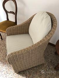 Vendo poltrona anche da esterno con i suoi cuscini in tessuti lavabile. La poltrona è stata acquistata 2 anni fa ed è in ottime condizioni. Misure cm: 62x68 x h max 86 - h seduta cm 40. Prezzo trattabile, trasporto a carico del compratore.
