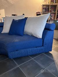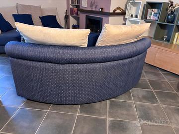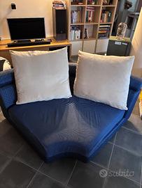 Poltrona di design angolare e curva colore blu con cuscini beige sfoderabili Ritiro a carico dell’acquirente Profondità 1mt Raggio 90cm