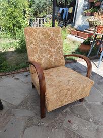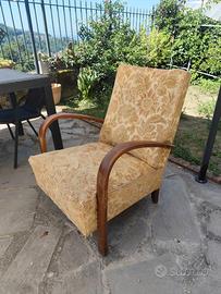 Poltrona singola, con ottima struttura in legno. Da rifoderare e rifare il fondo. Misure in foto.