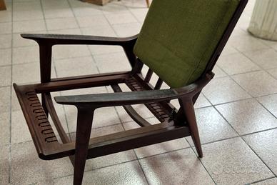Poltrona stile svedese in legno con inserto in pelle. Reclinabile due posizioni. Da rilucidare e riposizionare il cordone elastico di fondo. Visibile a Minerbio(BO)