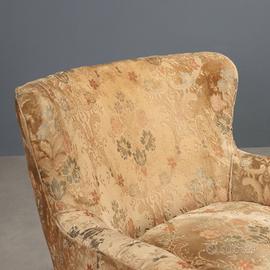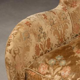 piuma, rivestimento in tessuto originale del periodo, piedini conici in legno.