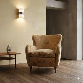 Poltrona vintage di manifattura italiana con imbottitura a molle, cuscino in