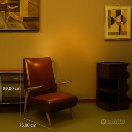 Poltrona ad imbottitura a molle, rivestimento in similpelle con gambe e