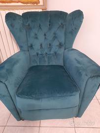 imponente poltrona anni 50 blu petrolio,schienale capitone' in velluto antigoccia antimacchia,lavabile.di grandi dimensioni.visibile a torino,consigliata a persone di alta statura per le sue dimensioni.