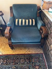 Poltrona in velluto e legno noce lavorata a mano ne ho due