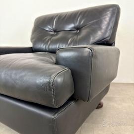 Poltrona in vera pelle color testa di moro.