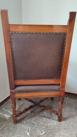 Poltrona antica in legno con seduta e schienale in pelle. Dim. cm. 60 x 60 x h. 120. Ritiro a carico dell'acquirente