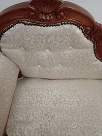Poltrona antica ben tenuta, larghezza 98 cm. Tessuto intatto, idem per quanto riguarda la parte in legno. Da rivedere volendo, l'imbottitura
