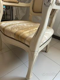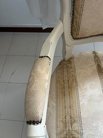 Poltrona antica , rifoderata interamenre con tessuto damascato , dipinta in stile shaby . Solo ritiro a mano zona Mestre (VE)