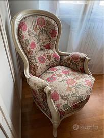 Vendesi poltrona in ottimo stato, stile antico, per amanti dell’antiquariato. Utilizzata pochissime volte. Ottima come arredamento per camere da letto e soggiorni. Utile anche per allestimento vetrine. Ritiro sul posto. Pagamento alla consegna in contanti.