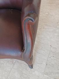 Poltrona .in pelle risalente si primi del.900 braccioli con intarzio , non necessita di particolari restauri