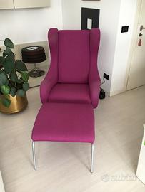 Poltrona Arflex con Pouff poggiapiedi cm 78 x 92 x h.102 rivestimento in tessuto. Ha una imperfezione nella parte alta. Da esposizione