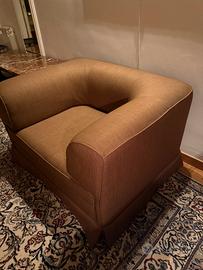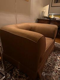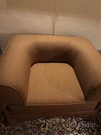 POLTRONA ARTIGIANALE DI DESIGN – PEZZO UNICO Vendo splendida poltrona artigianale realizzata da tappezziere, caratterizzata da linee morbide e avvolgenti, estremamente elegante e raffinata. Un complemento d’arredo di grande presenza, perfetto per ambienti curati, studi professionali o salotti di livello. ✔ Struttura solida e di qualità ✔ Imbottitura ampia e molto confortevole ✔ Rivestimento in tessuto pregiato color caldo, facilmente abbinabile ✔ Realizzazione artigianale (non produzione industriale) Misure: •Altezza: 68 cm •Larghezza: 112 cm •Profondità: 80 cm La poltrona è in ottime condizioni, mantenuta con cura. 💰 Prezzo: 350 € (non trattabile)