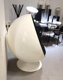 Poltrona iconica stile anni ’60, modello a sfera con base girevole.