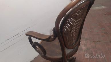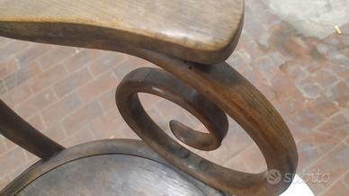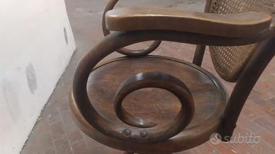 ANTICA E MERAVIGLIOSA POLTRONA DA BARBIERE IN LEGNO E VIMINI IN STILE THONET.