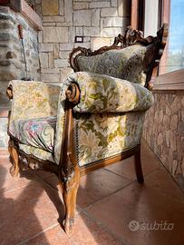 Poltrona in legno, stile Barocco. Struttura in legno massello, seduta tutta da restaurare