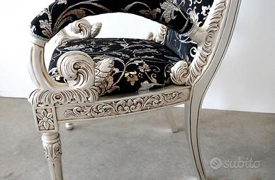 Nuova poltrona barocco stile Versace in foglia argento patinata,
