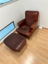 CHARLOTTE poltrona e poufcon accessorio fumatore rivestimento in pelle Old England A+